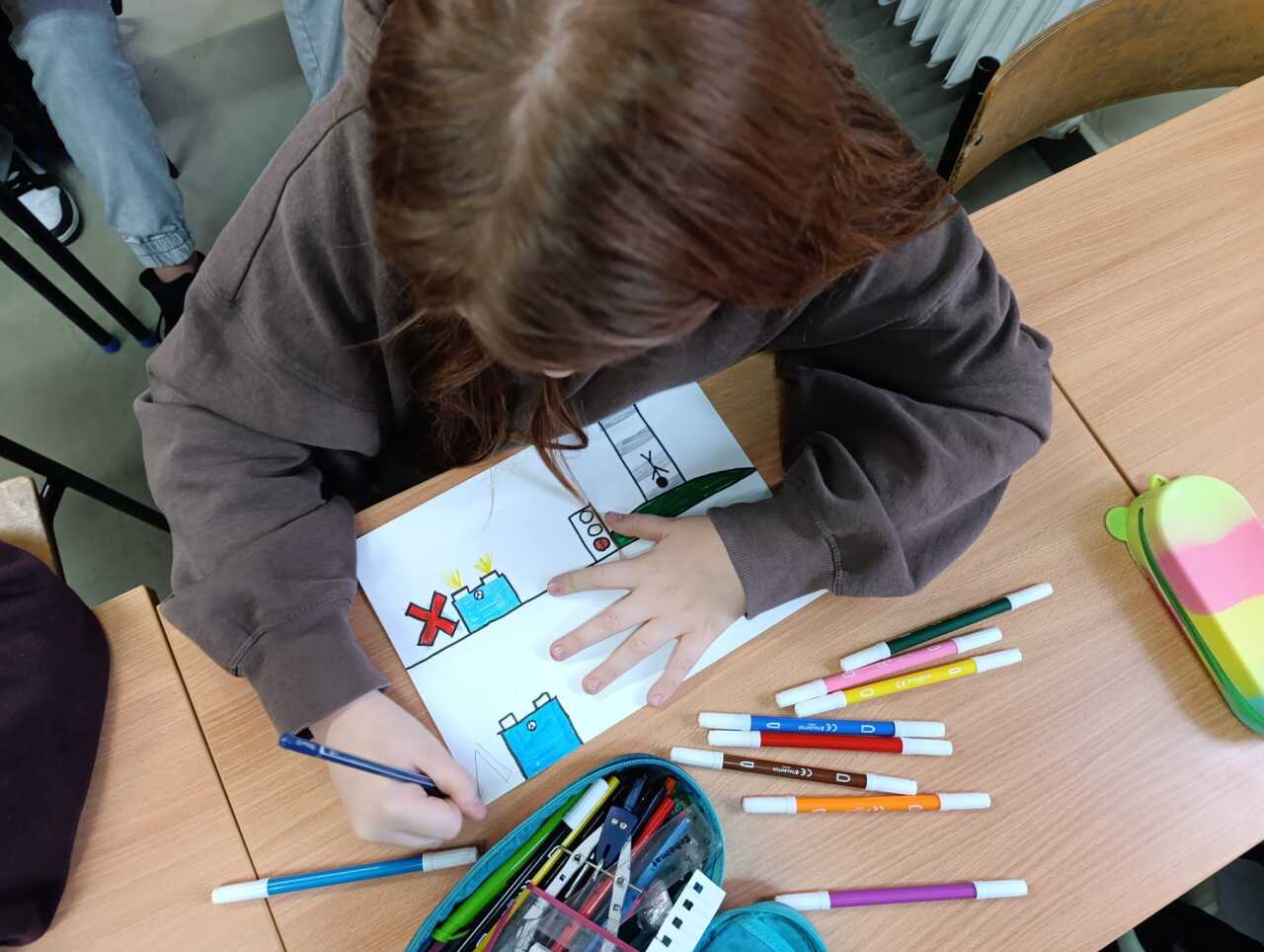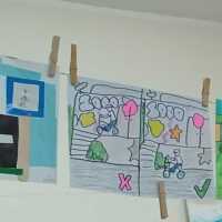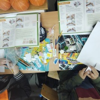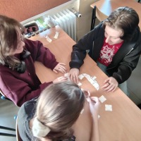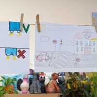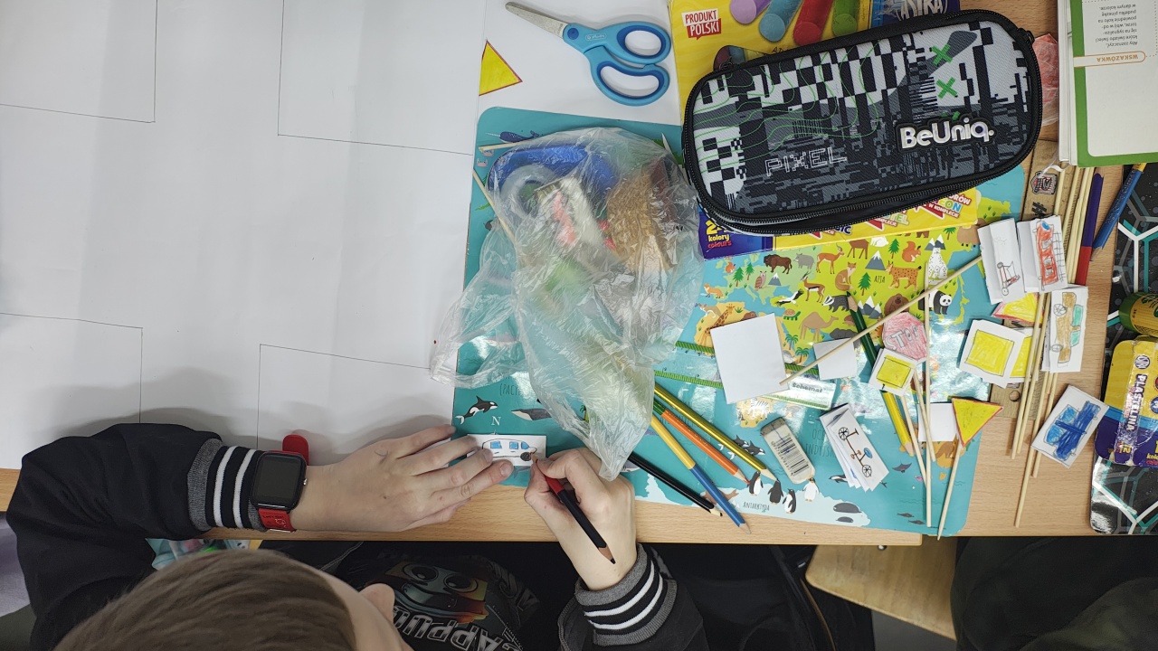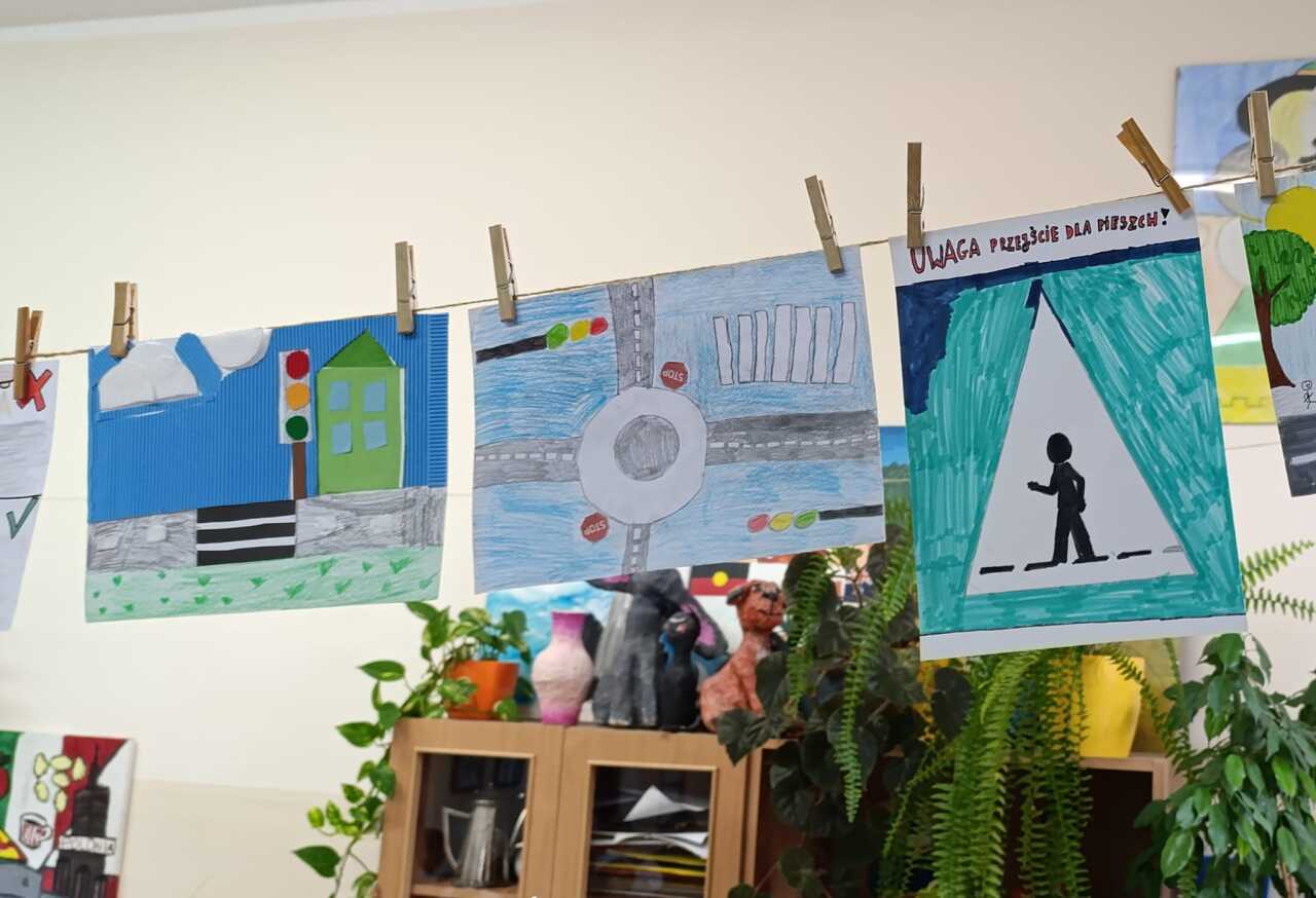 W ramach projektu/konkursu "Odblaskowa Szkoła" uczniowie wykonywali makietę imitującą ruch drogowy. Praktyczne zajęcia na pewno pomogą uczniom prawidłowo poruszać się po drogach.