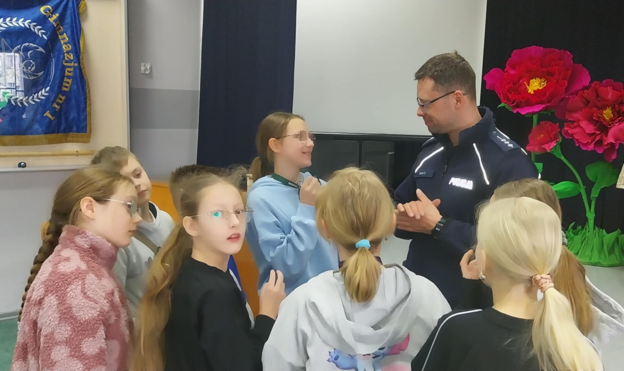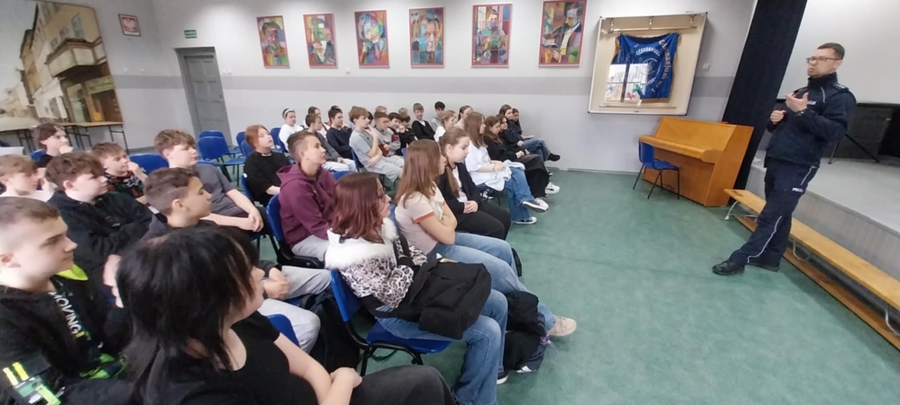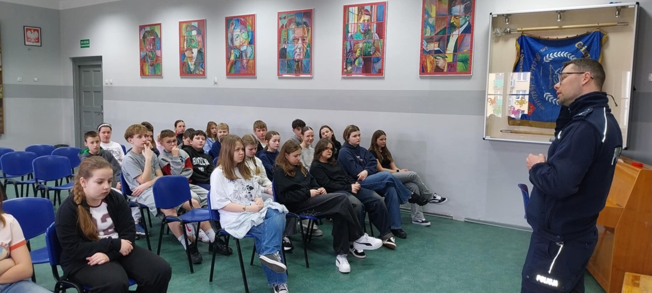 Uczniowie klas 7️⃣ i 8️⃣ wzięli udział w ważnym spotkaniu z funkcjonariuszem Policji 🚔 z Komendy Powiatowej Policji w Ostrowie Wielkopolskim