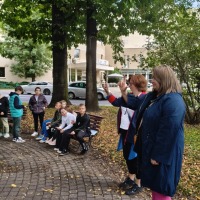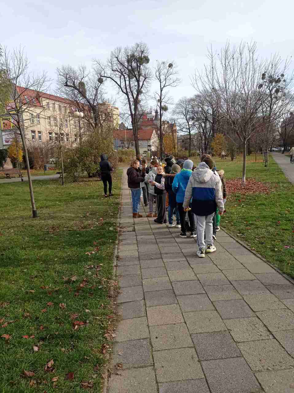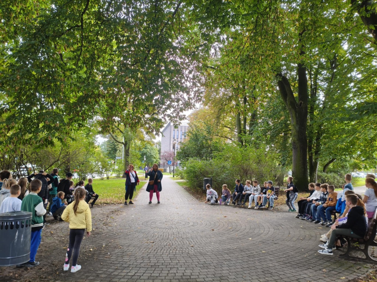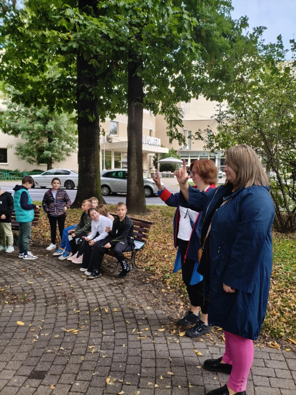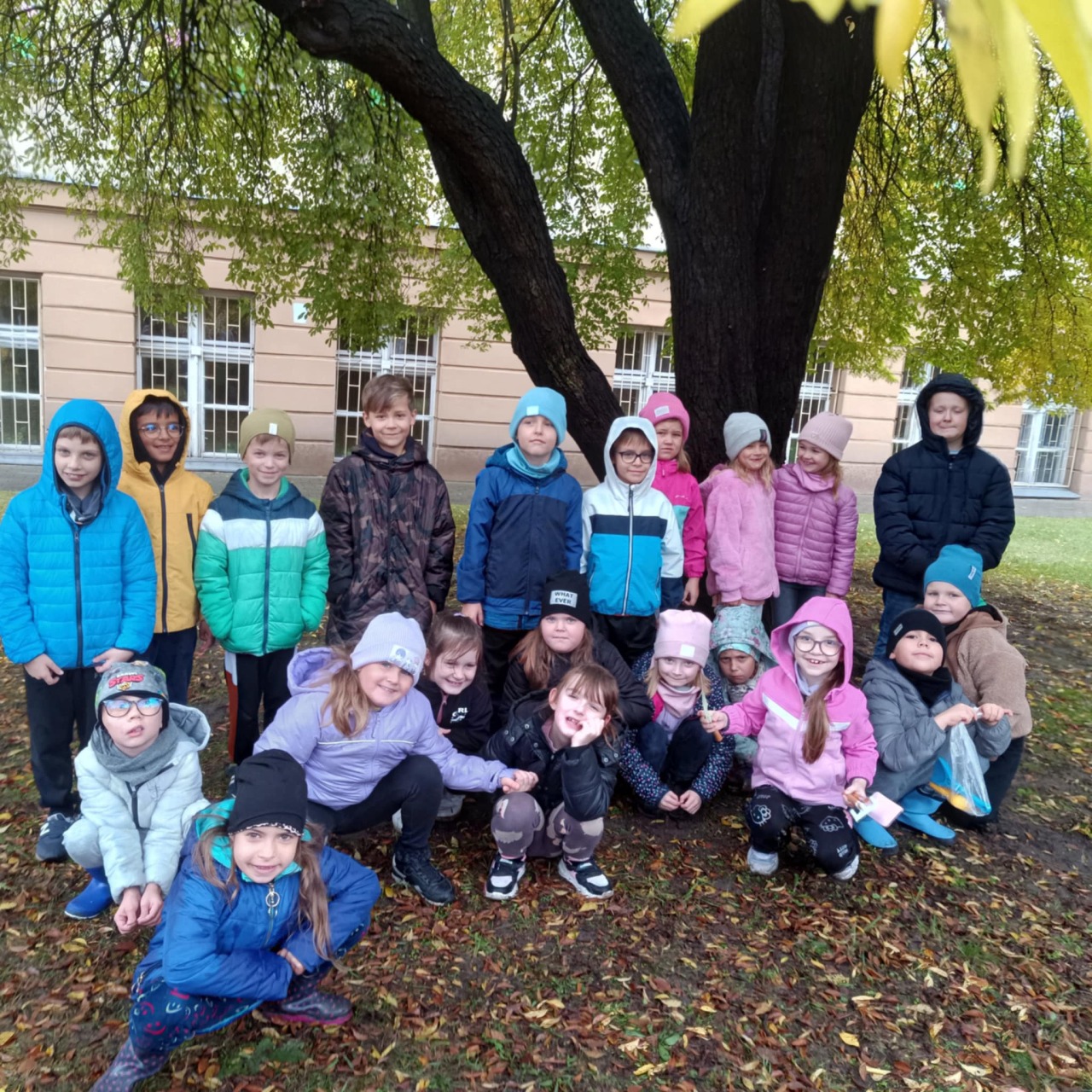 Podczas jesiennego spaceru w poszukiwaniu oznak jesieni uczniowie klas III wzięli udział w krótkiej lekcji języka migowego. 🌳🤲 Były zagadki, rymowanka o porach roku i dużo radości z nauki na świeżym powietrzu.