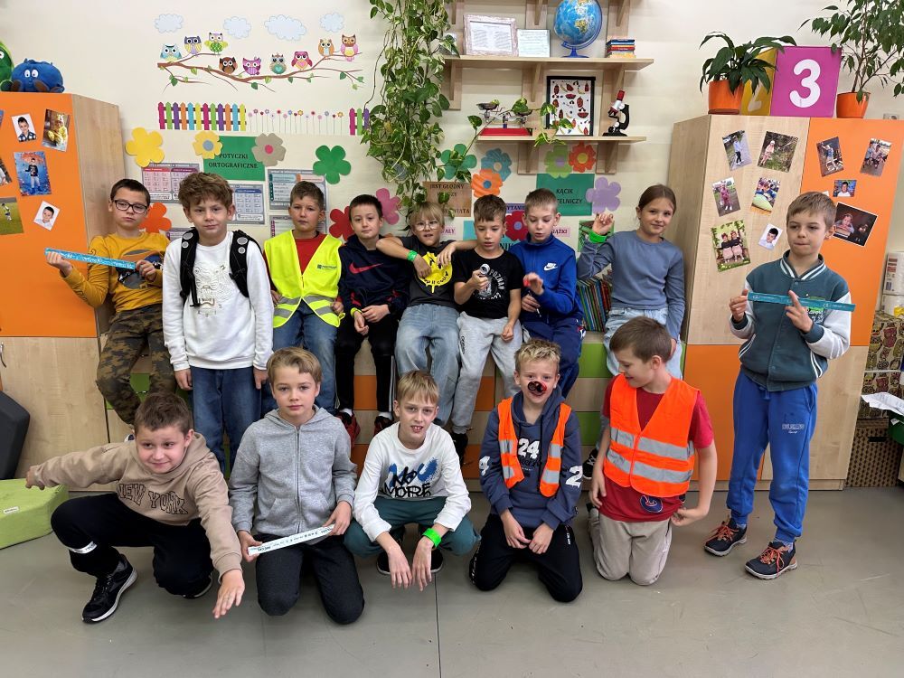 Angażujemy się w różnorodne działania edukacyjne i profilaktyczne - tworzymy własne piosenki, filmiki, prace plastyczne, organizujemy konkurs wiedzy o bezpieczeństwie ruchu drogowego. Organizujemy także akcje promujące noszenie odblasków wśród uczniów, rodziców, seniorów, a ich kreatywne pomysły sprawiają, że profilaktyka drogowa staje się atrakcyjna i inspirująca dla całych społeczności lokalnych.