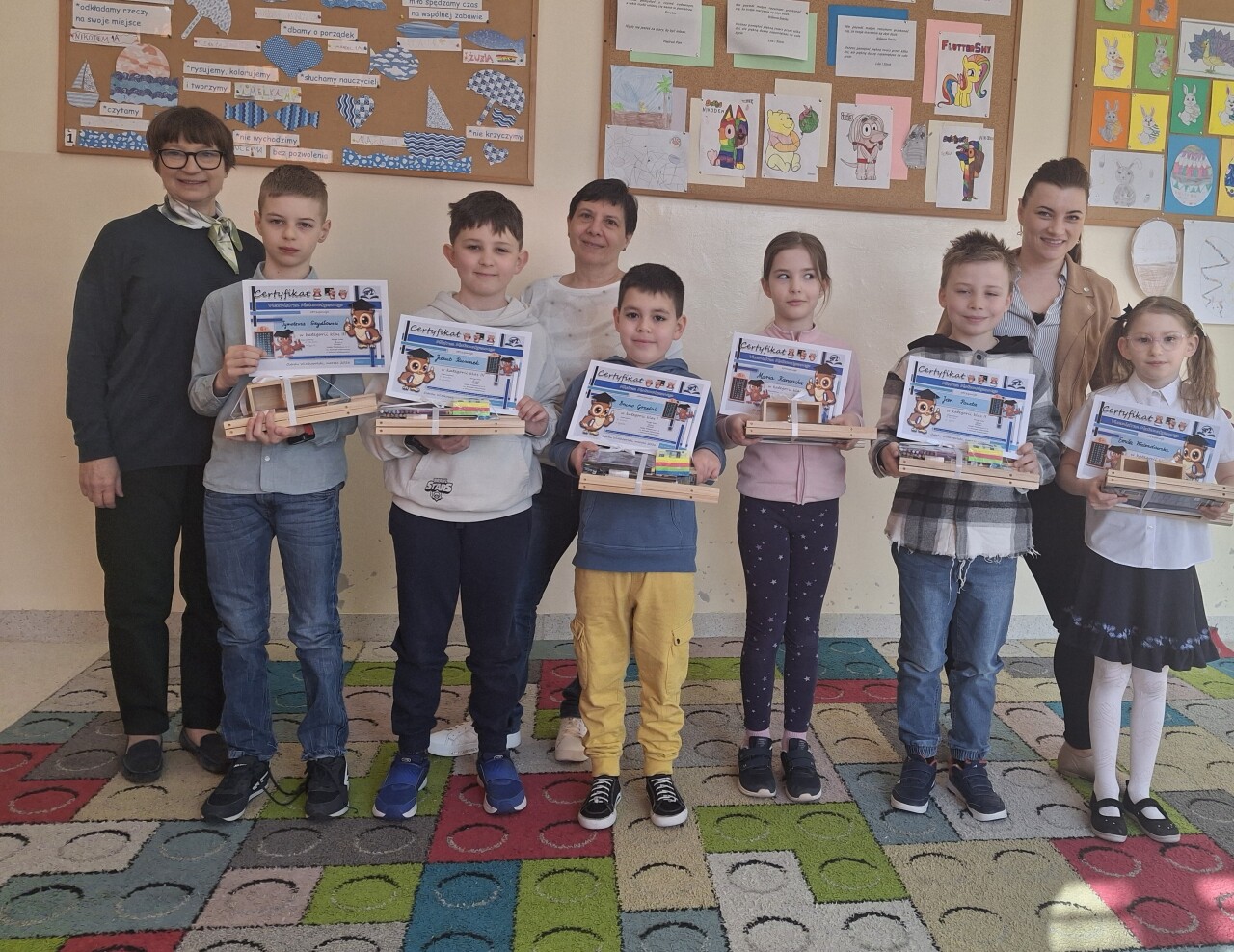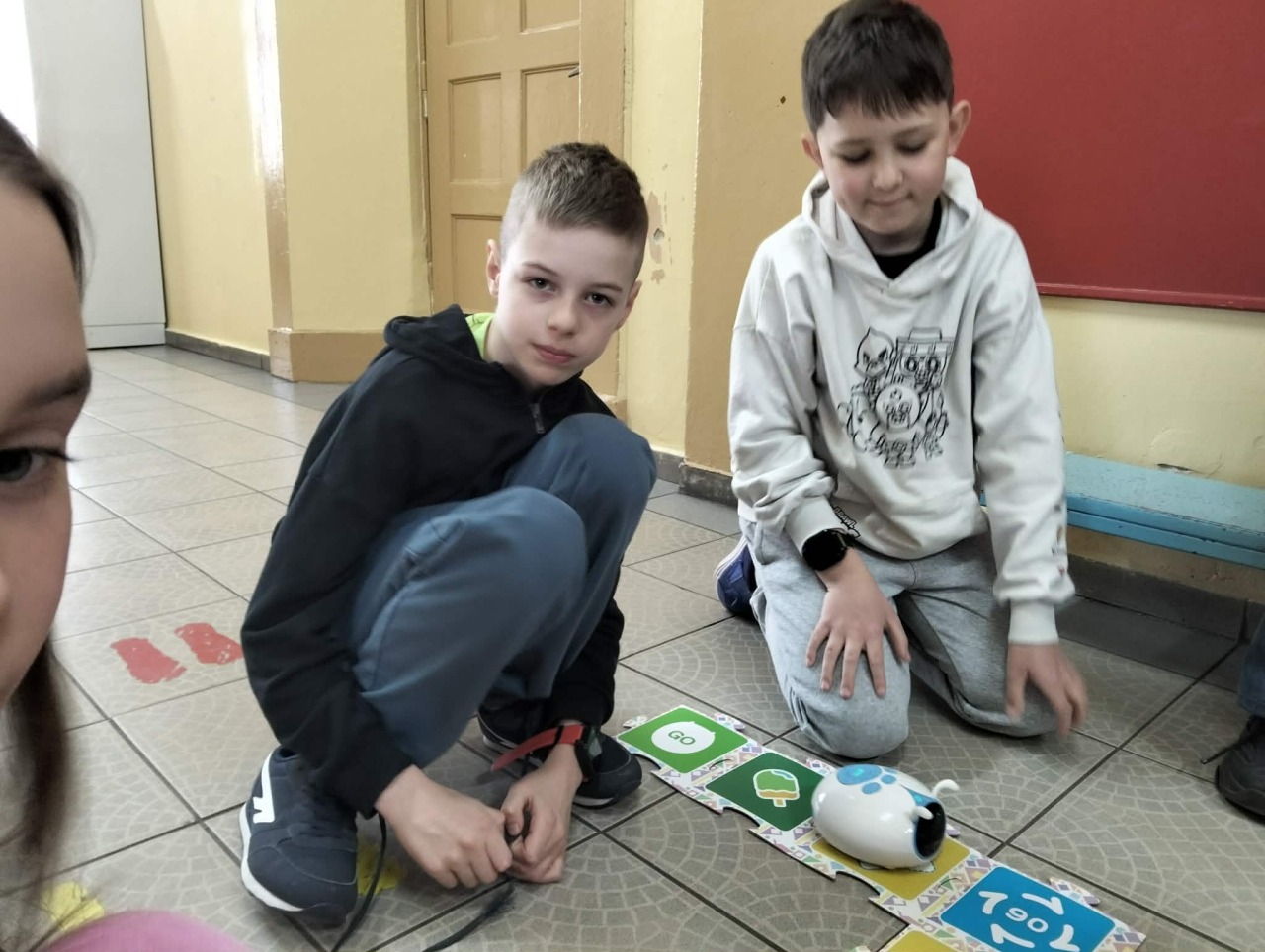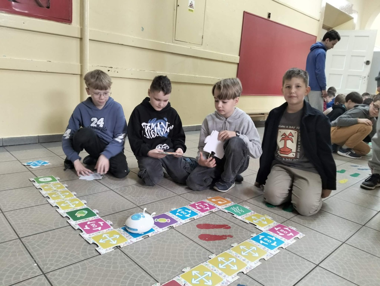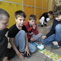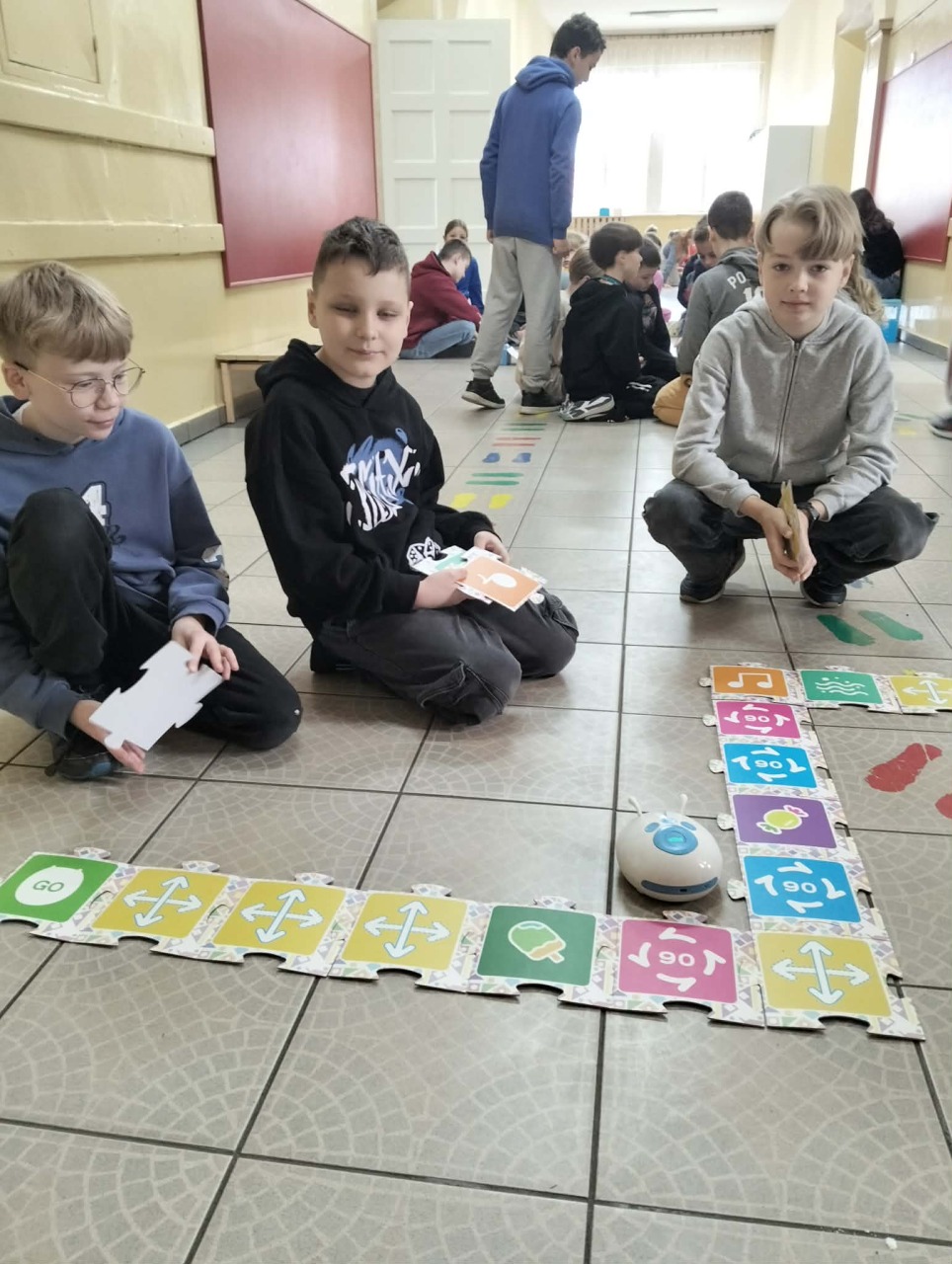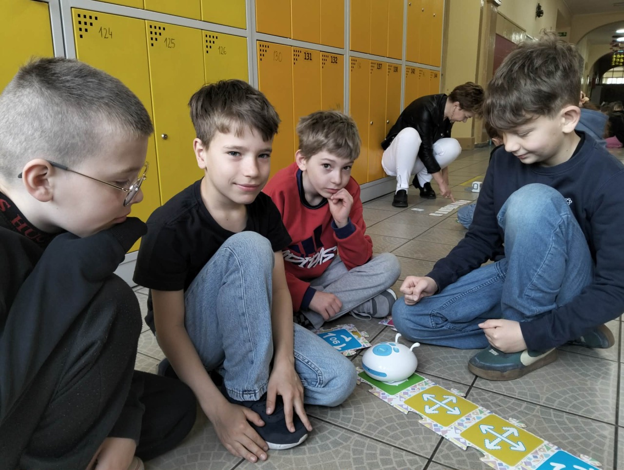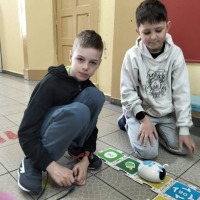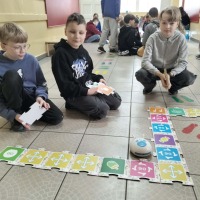 STARSI UCZĄ MŁODSZYCH. W dniu 15 kwietnia uczniowie klasy 3a uczestniczyli w interesującej i angażującej lekcji robotyki, przeprowadzonej przez uczniów klasy 6a w ramach projektu „Starsi uczą młodszych”. Podczas zajęć trzecioklasiści mieli okazję poznać podstawy programowania oraz działania robotów, a także rozwijać swoje umiejętności logicznego myślenia i współpracy w grupie.