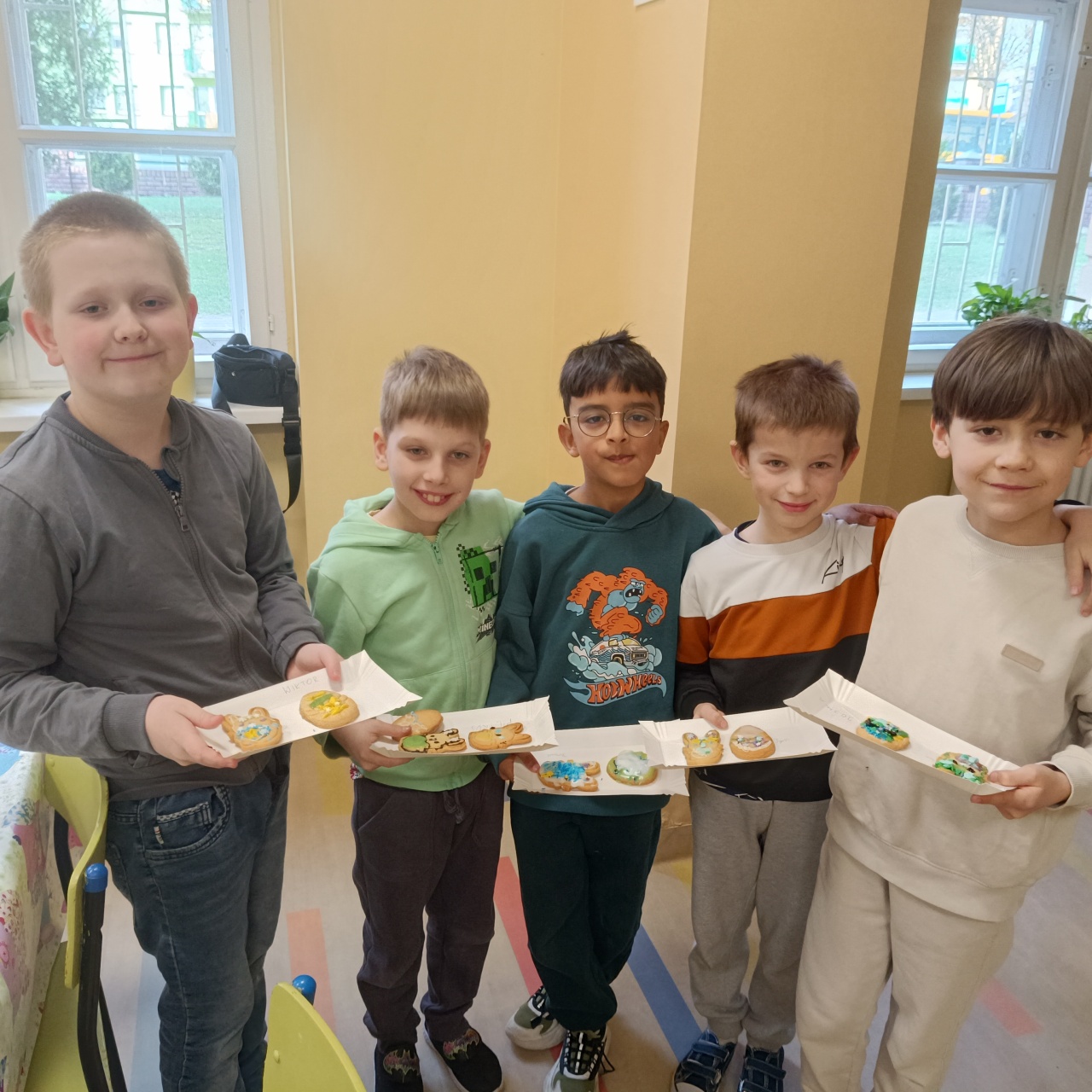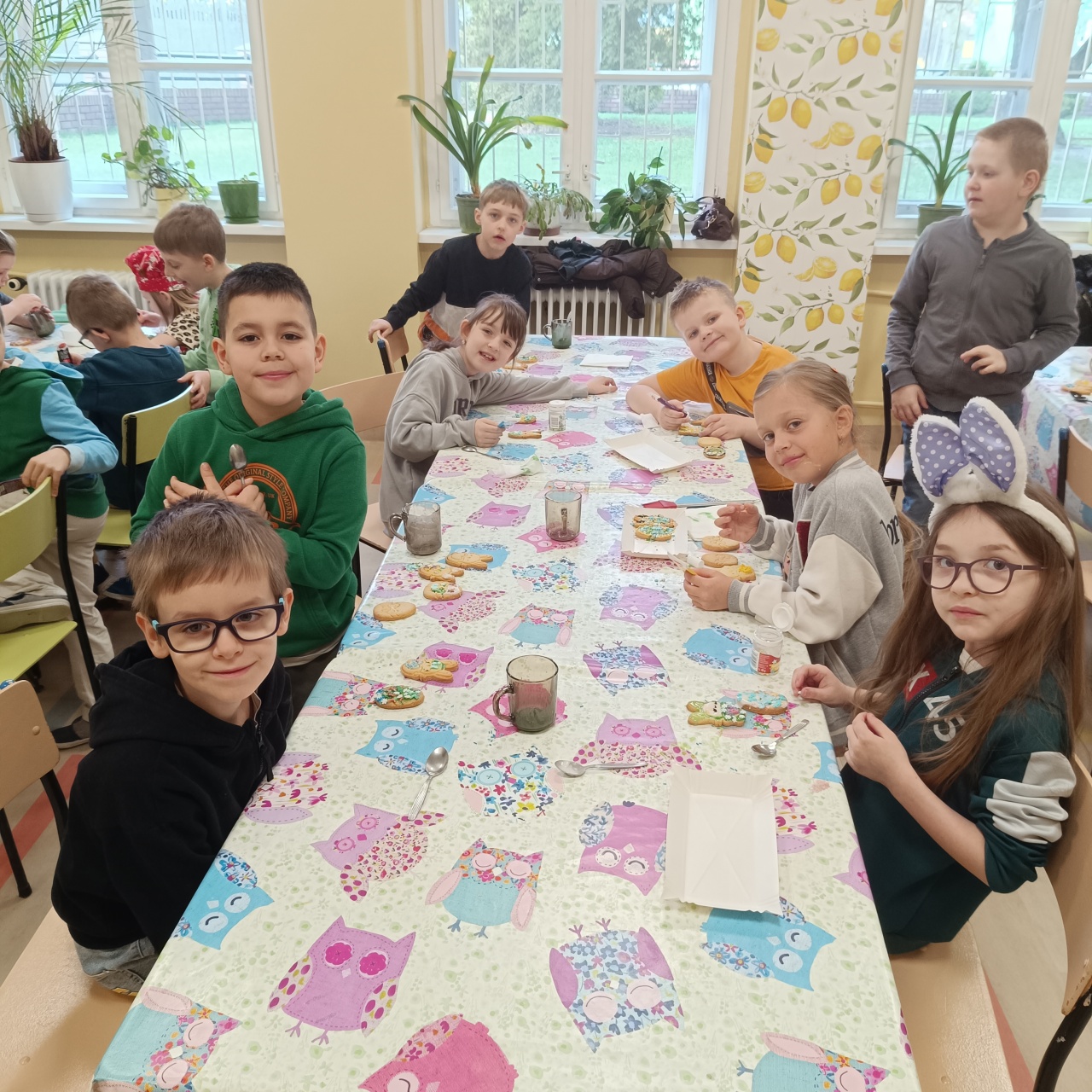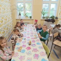 „Wielkanocna przygoda 1b ze smakiem i tradycją”Uczniowie wzięli udział w warsztatach wielkanocnych, podczas których przygotowywali i dekorowali ciasteczka w kształcie jajek oraz zajączków. Wykazali się przy tym kreatywnością, zręcznością i pomysłowością, tworząc małe dzieła sztuki.
