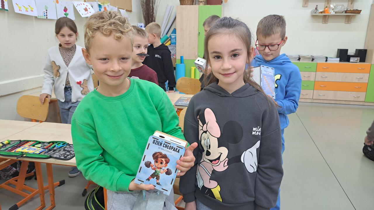Dzień Chłopca w klasach 1-3. W klasach 1 - 3 Dzień Chłopca upłynął w radosnej i miłej atmosferze. Dziewczynki złożyły kolegom serdeczne życzenia, a każdy chłopiec otrzymał drobny upominek. Nie zabrakło wspólnych zabaw, uśmiechów i miłych gestów, które sprawiły, że ten dzień był wyjątkowy. Świętowanie w klasowej społeczności umocniło więzi i dostarczyło wszystkim wiele radości.
