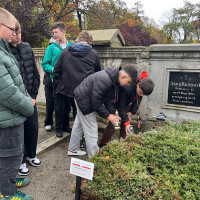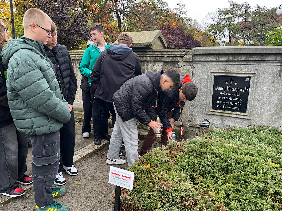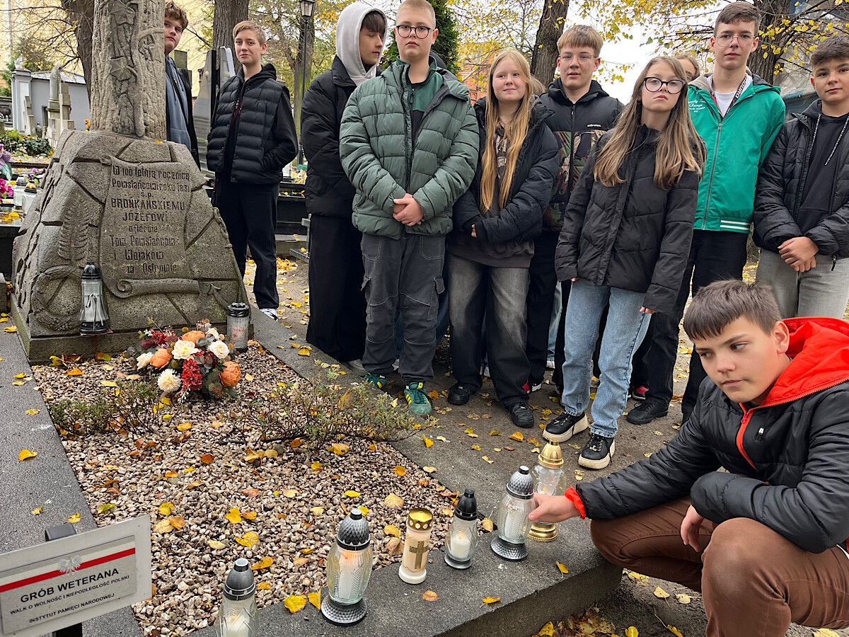 PAMIĘTAMY O ZMARŁYCH... 24 października 2025 roku klasa 8b udała się na cmentarz, by uczcić pamięć zmarłych, zwłaszcza tych, którzy walczyli w obronie ojczyzny. Uczniowie modlili się za zmarłych i zapalili dla nich symboliczny znicz.