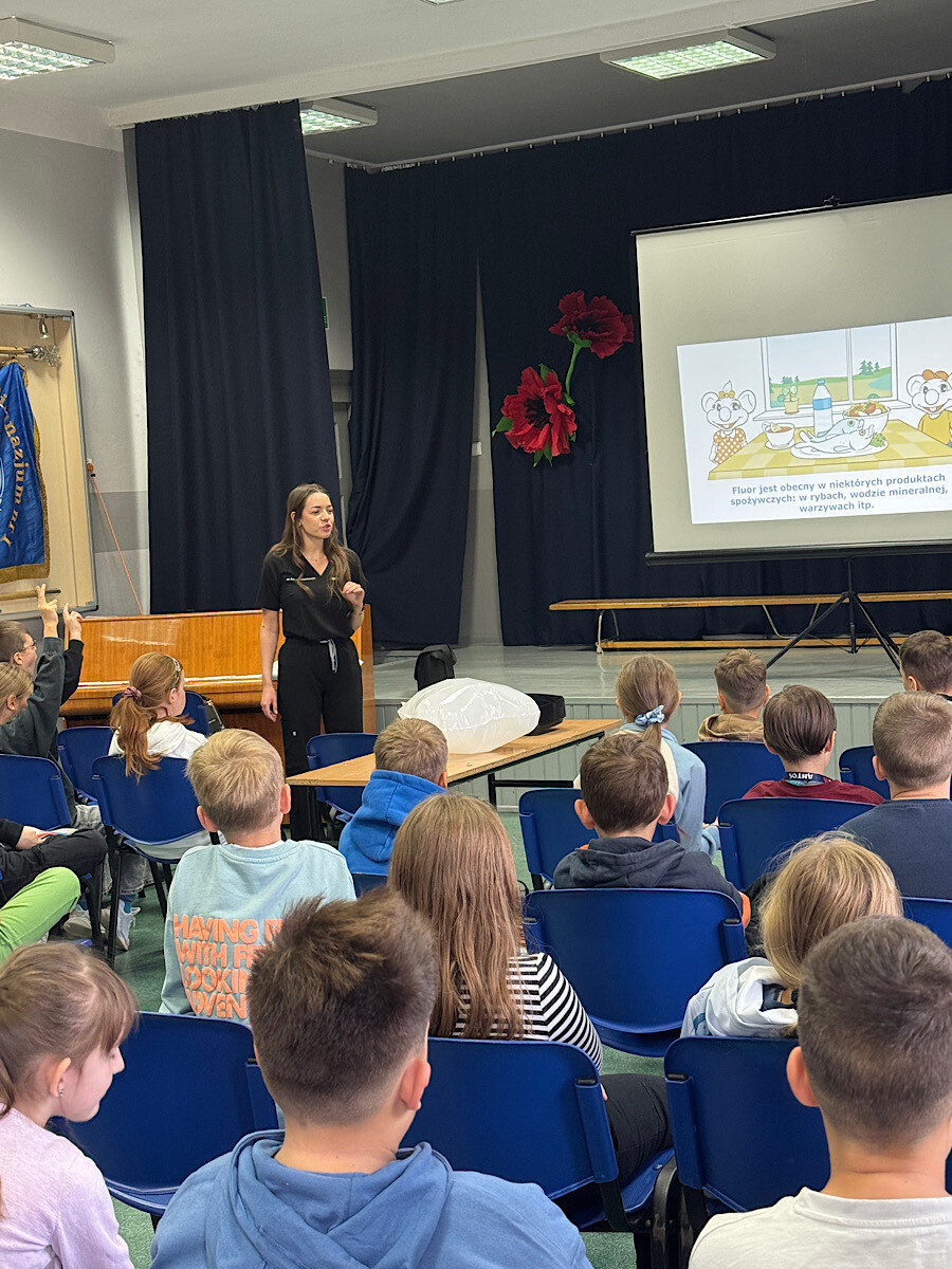 Zdrowe zęby...warto mieć! 30 września 2025 roku w Szkole Podstawowej nr 2 w Ostrowie Wielkopolskim odbyła się akcja profilaktyczna związana z prawidłowym myciem zębów. W spotkaniu uczestniczyły dzieci klas trzecich. Uczniowie mieli okazję poznać filary, na których opiera się prawidłowe dbanie o zęby. Wszyscy uczestnicy otrzymali dyplom uczestnictwa oraz kolorowankę.