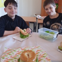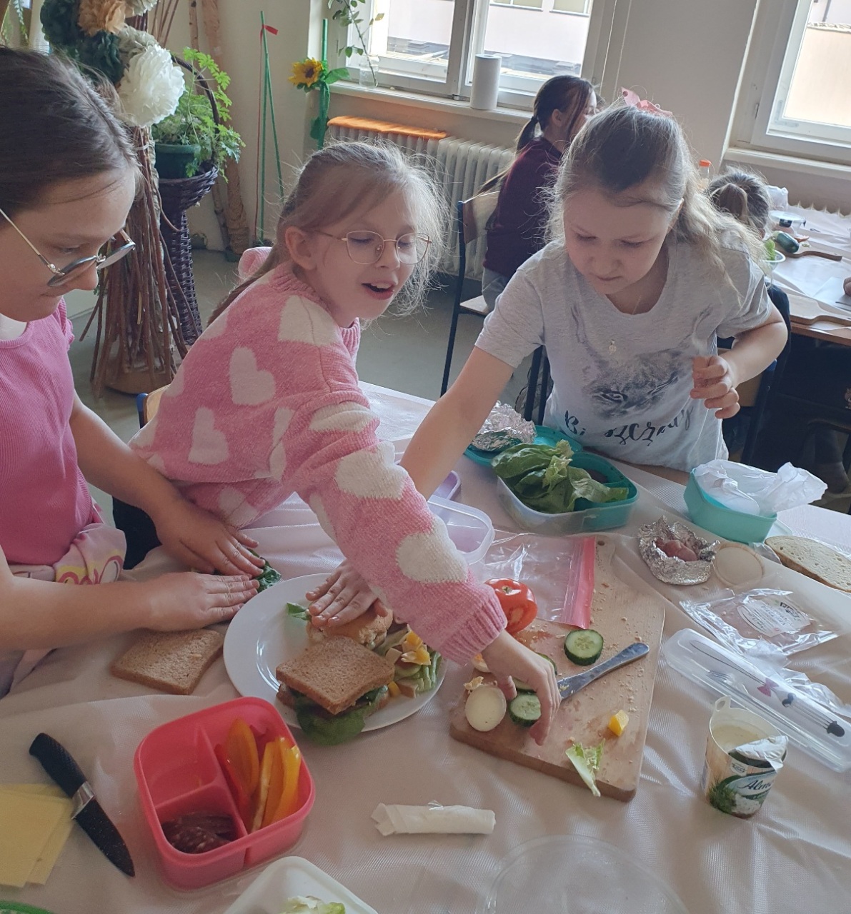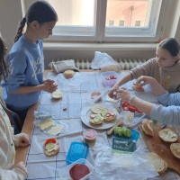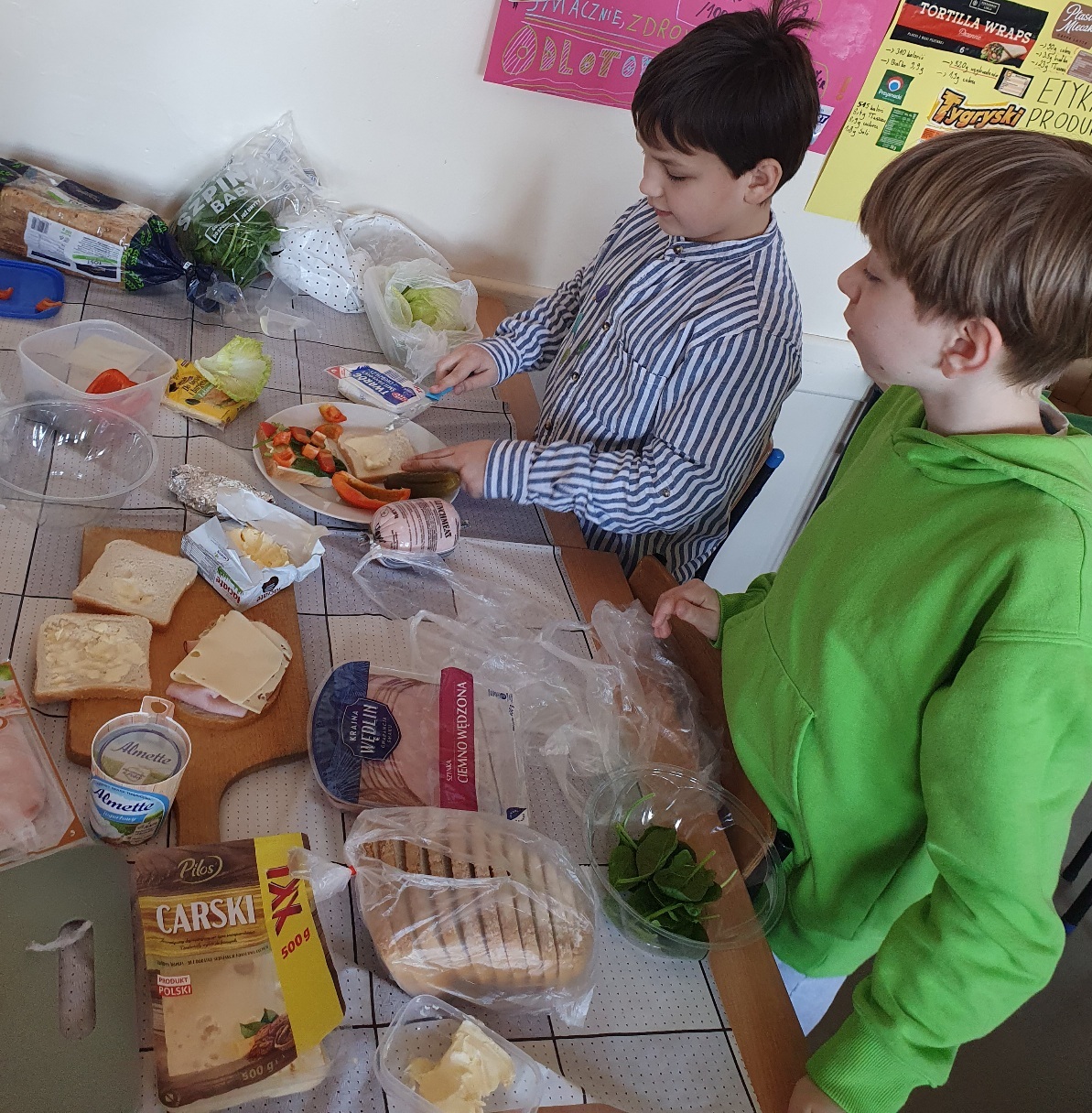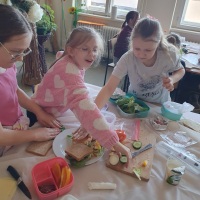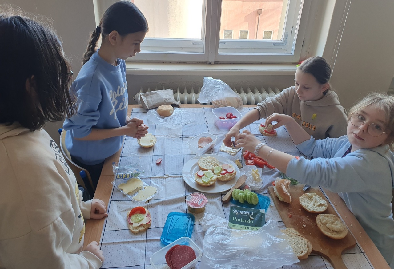 Edukacja zdrowotna w praktyce. Uczniowie klas 4a i 4b realizowali edukację zdrowotną w praktyce, biorąc udział w warsztatach kulinarnych, podczas których przygotowali pełnowartościowe śniadanie. Zadaniem dzieci było stworzenie kanapek bogatych w wartościowe składniki odżywcze, a także estetyczne zaprezentowanie swoich potraw.