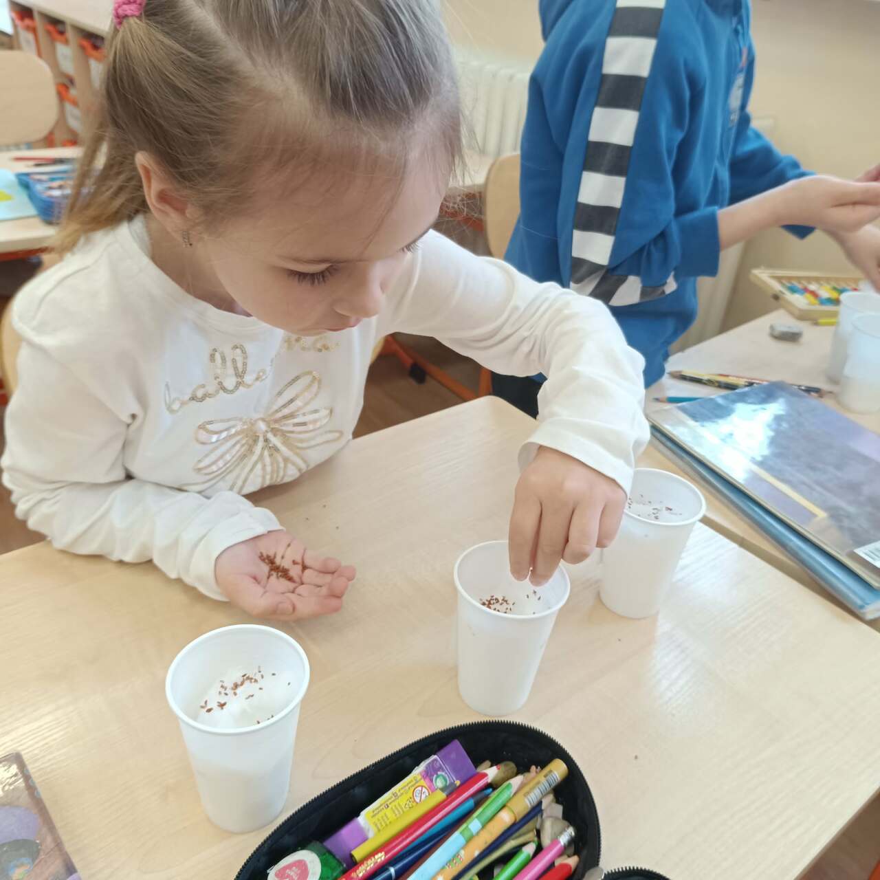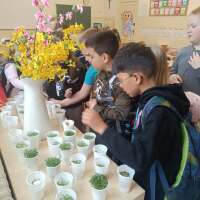 Miłośnicy przyrody. Pierwszoklasiści zamienili się w małych przyrodników i przeprowadzili własne eksperymenty z roślinami. Siali rzeżuchę i obserwowali, jak rośnie w różnych warunkach. Sprawdzali, co dzieje się, gdy rośliny mają dostęp do wody i światła, a także gdy któregoś z tych elementów brakuje. Dzięki temu przekonali się, że bez wody rośliny więdną, a bez światła rosną słabiej i tracą zdrowy wygląd. Była to ciekawa i angażująca lekcja, która pokazała, jak ważne dla życia roślin są odpowiednie warunki.