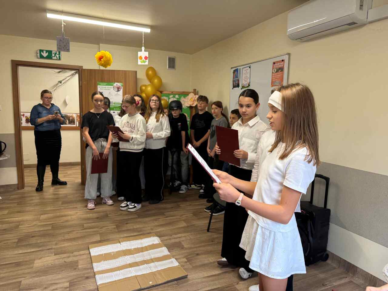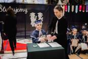 Okolicznościową tabliczkę upamiętniającą wydarzenie przygotował Mateusz Kunicki z klasy 7b.