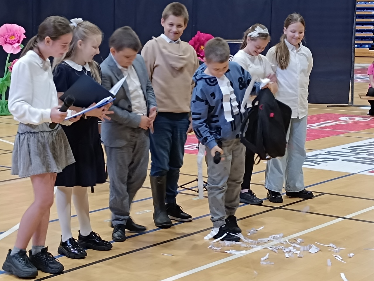 Nie zabrakło też empatii – uczniowie przynieśli karmę dla psów i kotów ze Schroniska „Pod Wiatrakami” w Wysocku Wielkim, wspierając piękną akcję na rzecz zwierząt.