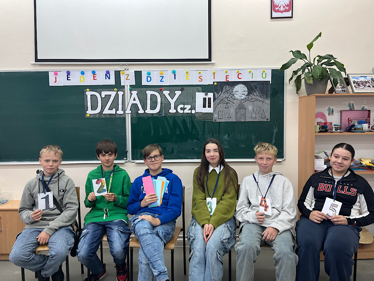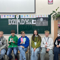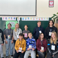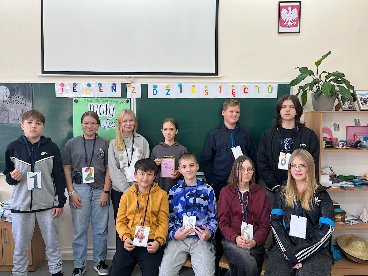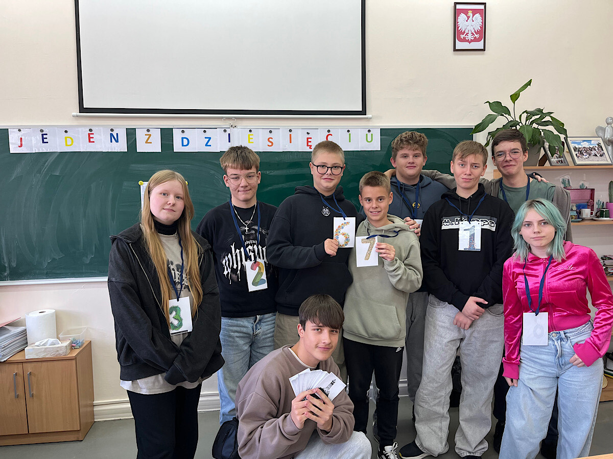 Uczniowie klasy 7a, b oraz 8b grają w grę ,,Jeden z dziesięciu". Podczas lekcji języka polskiego uczniowie doskonalili umiejętności opanowania treści lektury w sposób interesujący, czyli poprzez grę ,,Jeden z dziesięciu". Młodzież wcześniej przygotowała pytania do lektury, a podczas lekcji zgłosiła się do uczestnictwa w zabawie. Wszyscy rywalizowali o dotarcie do finału, ponieważ za pierwsze, drugie oraz trzecie miejsce mogli otrzymać nagrodę...