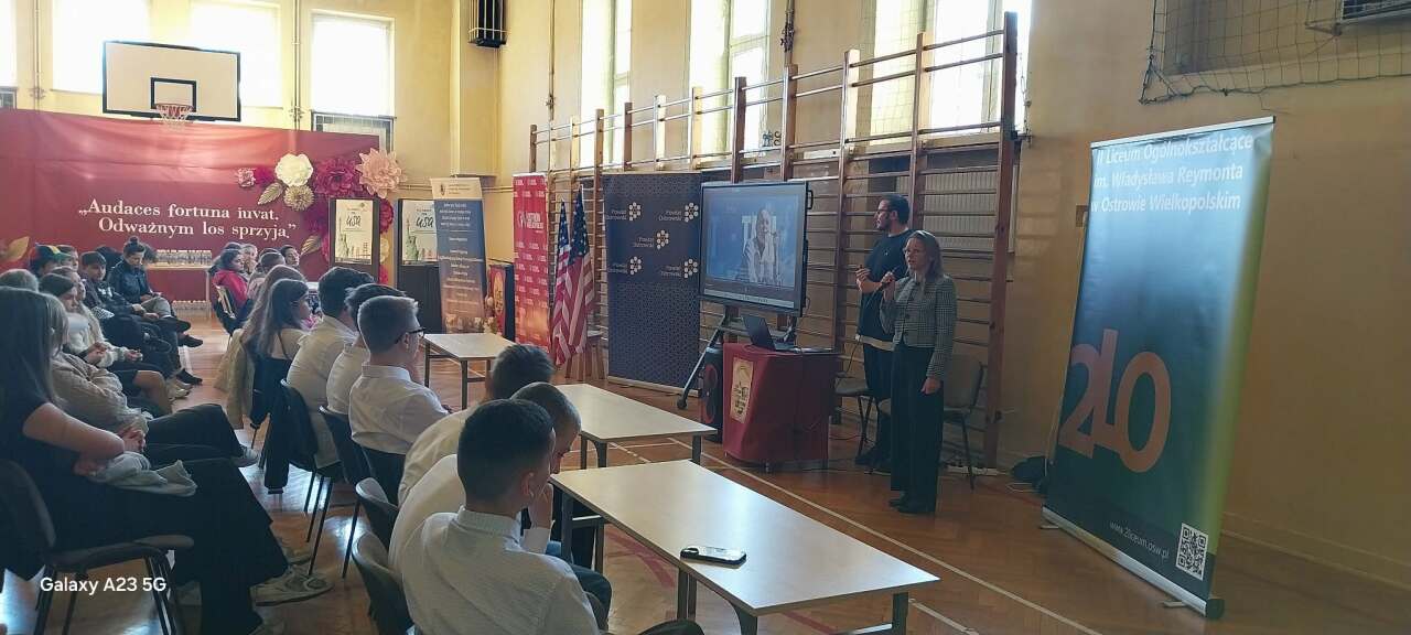 5 września społeczność naszej szkoły wzięła udział w akcji Narodowego Czytania Jana Kochanowskiego. Zgromadzeni w auli szkoły uczniowie wysłuchali pieśni i fraszek mistrza z Czarnolasu. Twórczość pierwszego polskiego poety zaprezentował p. Maksym Puchalski (szkolny pedagog) wespół z uczniami klasy 8a. Podczas spotkania uczniowie mieli okazję zapoznać się z biografią Kochanowskiego, przeczytać współczesną wersję szesnastowiecznej poezji i pokolorować jego wizerunek.