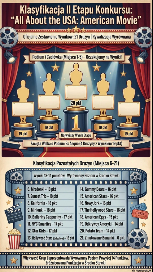 Jeśli myśleliście, że u młodszych było gorąco, to na poziomie klas VII–VIII rozpętała się prawdziwa burza mózgów! Tutaj poprzeczka zawisła jeszcze wyżej – zawodnicy musieli przetrwać aż trzyetapowy maraton, który wycisnął z nich siódme poty. Tradycyjnie zaczęło się od błyskawicznego Kahoota. Dziesięć pytań, sekundy na odpowiedź i ranking, który zmieniał się szybciej niż kursy na giełdzie! Następnie kolejne dziesięć zadań i tylko dziesięć minut. Tutaj liczyła się chłodna kalkulacja i precyzja pod ogromną presją tykającego zegara. Wielki Finał to był decydujący cios. Prawdziwa walka na argumenty, logiczne triki i strategiczne myślenie. To tutaj ważyły się losy zwycięstwa!