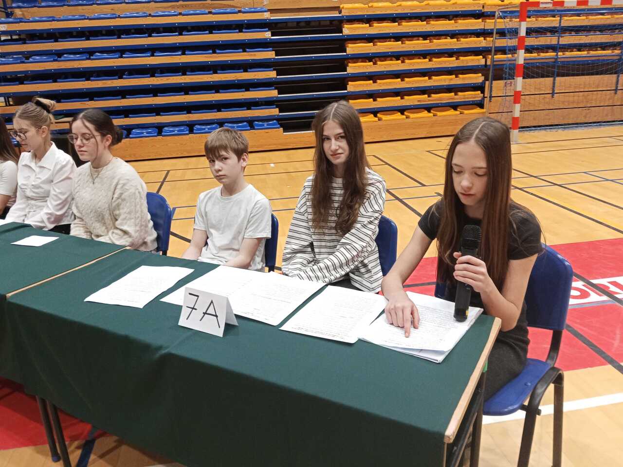 Uczniowie klasy 7a i 7b grają w grę ,,Jeden z dziesięciu" na podstawie