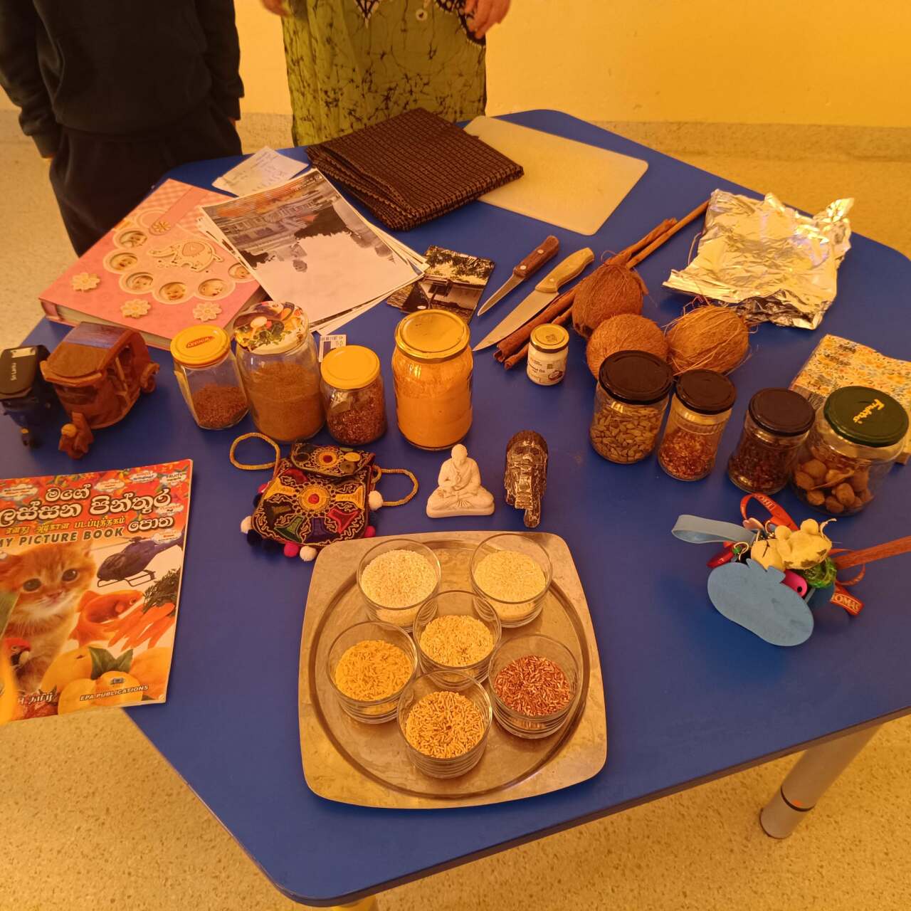 Dzieci poznały różnorodność owoców i przypraw – próbowały świeżego kokosa, mogły powąchać przyprawy, takie jak kardamon, goździki i kozieradka. Dowiedziały się więcej o cynamonie. Mogły zobaczyć pamiątki rodzinne oraz zdjęcia z podróży, które przybliżyły im piękno tego miejsca. Nie zabrakło opowieści o przygodach z pobytu na wyspie, ciekawostek o gestach i zwyczajach oraz o tym, jak wygląda życie na Sri Lance z perspektywy jej mieszkańców.