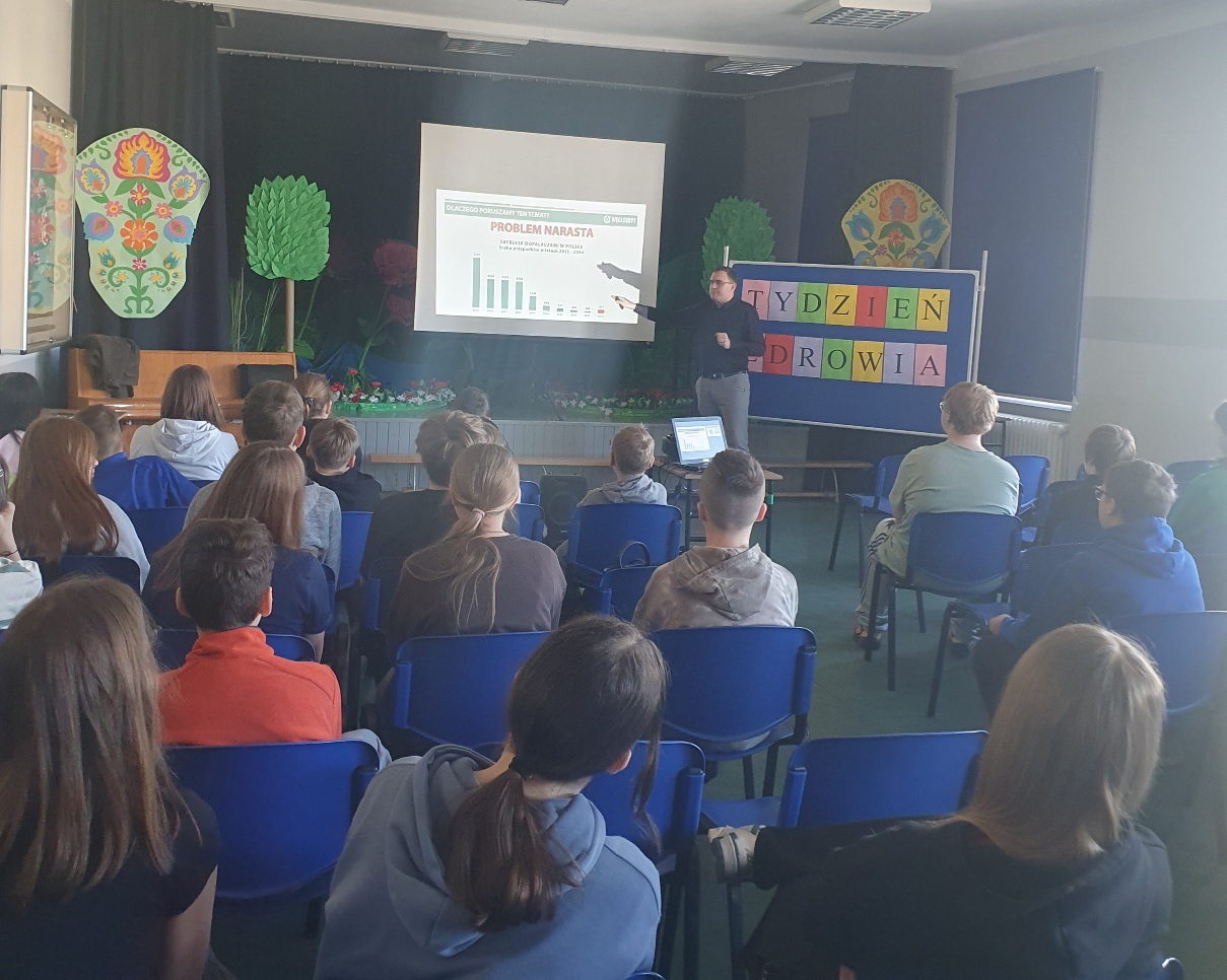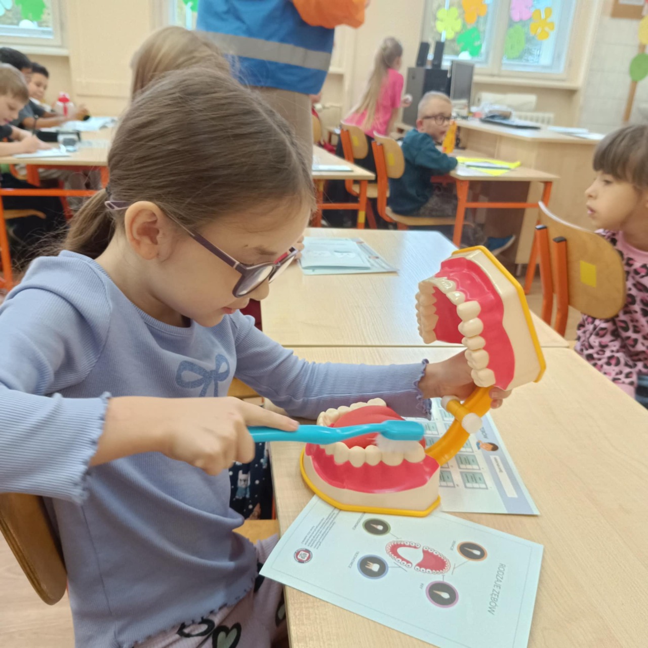 Uczniowie klasy 1b uczestniczyli w zajęciach profilaktycznych na temat higieny jamy ustnej, które realizowane były w ramach wojewódzkiego projektu edukacyjnego "Mam zdrowe zęby". Zajęcia prowadził przedstawiciel Powiatowej Stacji Sanitarno-Epidemiologicznej w Ostrowie Wielkopolskim. Dziękujemy za przekazaną wiedzę, cenne wskazówki oraz gadżety, które przyczynią się do codziennego dbania o nasze zęby.