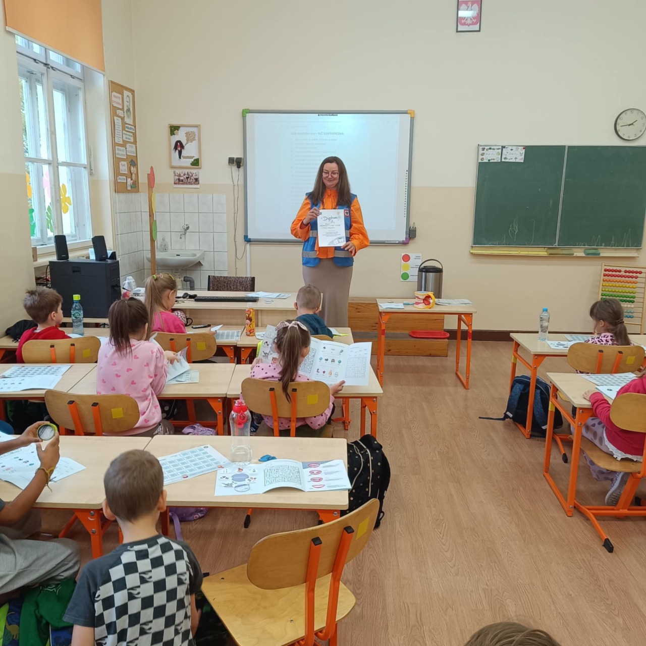 Dzisiejszy dzień to "Dzień Kamizelki". W roli głównej wystąpiły kamizelki odblaskowe. Wszystkie klasy w tym dniu ubrały te bardzo ważne elementy naszego bezpieczeństwa, aby podkreślić to jak ważne są wszystkie elementy, które sprawią, że jesteśmy widoczni na drodze po której się poruszamy! Ten dzień, to jeden z punktów, który szkoła realizuje w ramach konkursu "ODBLASKOWA SZKOŁA". Brawo!