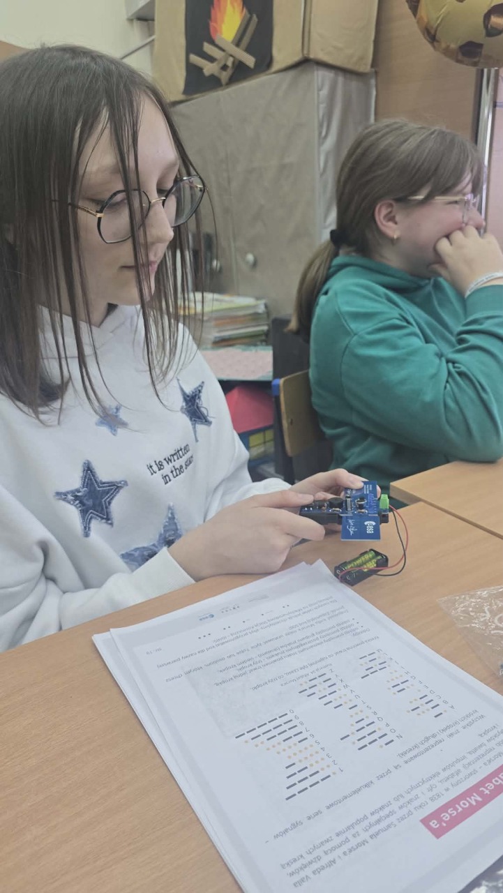 W ramach projektu „Klucz do Kosmosu” uczymy się alfabetu Morse'a. Poznajemy sposób przekazywania informacji za pomocą kropek i kresek oraz ćwiczymy odczytywanie i zapisywanie prostych wiadomości za pomocą dżwięku, światła i mowy.