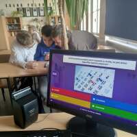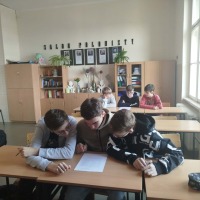 Uczniowie grają w grę ,,Jeden z dziesięciu". Podczas lekcji języka polskiego uczniowie klasy 7a i 7b doskonalili umiejętności opanowania treści lektury ,,Zemsta" i ,,Balladyna" w sposób interesujący, czyli poprzez grę ,,Jeden z dziesięciu". Młodzież wcześniej przygotowała pytania do lektury, a podczas lekcji zgłosiła się do uczestnictwa w zabawie i wszyscy rywalizowali o dotarcie do finału, ponieważ za pierwsze, drugie oraz trzecie miejsce mogli otrzymać nagrodę...Pomysł utrwalania treści lektury poprzez zabawę ma już swoją tradycję w szkole i na pewno będzie kontynuowany w kolejnych latach.