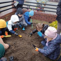 LEKCJA PRZYRODY na Szkolnej Grządce. Pierwszoklasiści wykazali się dziś zaradnością, samodzielnością oraz pracowitością podczas sadzenia cebulek kwiatów wiosennych przed naszą szkołą. To ta część zajęć sprawiła dzieciom najwięcej radości. Uczniowie poznali nazwy kwiatów, utrwalili wiedzę przyrodniczą. Całemu przedsięwzięciu bacznie przyglądali się rodzice i babcia, którym bardzo dziękujemy za obecność. Było to dla nas ciekawe i ekscytujące doświadczenie, którego efekty obserwować będziemy wiosną. Nie możemy się doczekać.