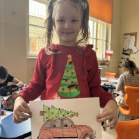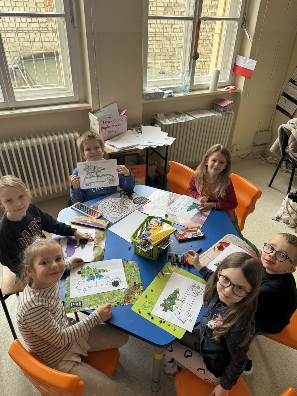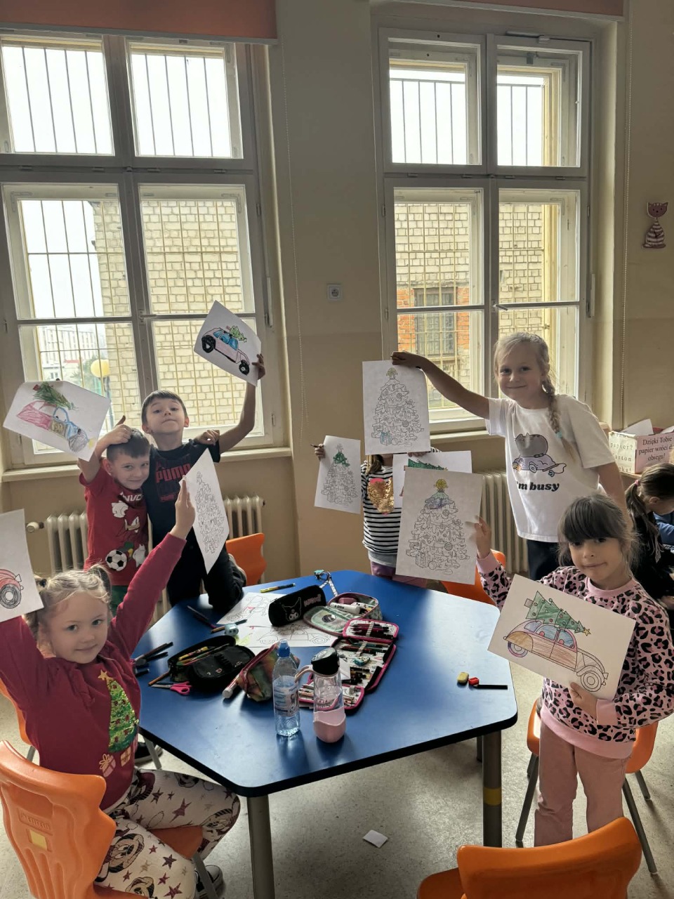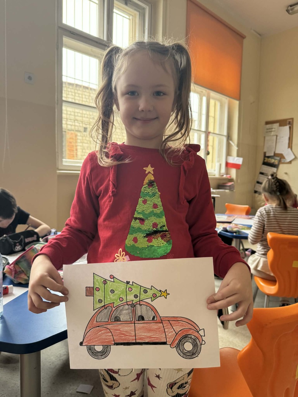 Na koniec dzieci wykonały swoje kolorowe prace plastyczne – autko z choinką. Wyszło przepięknie i bardzo pomysłowo!