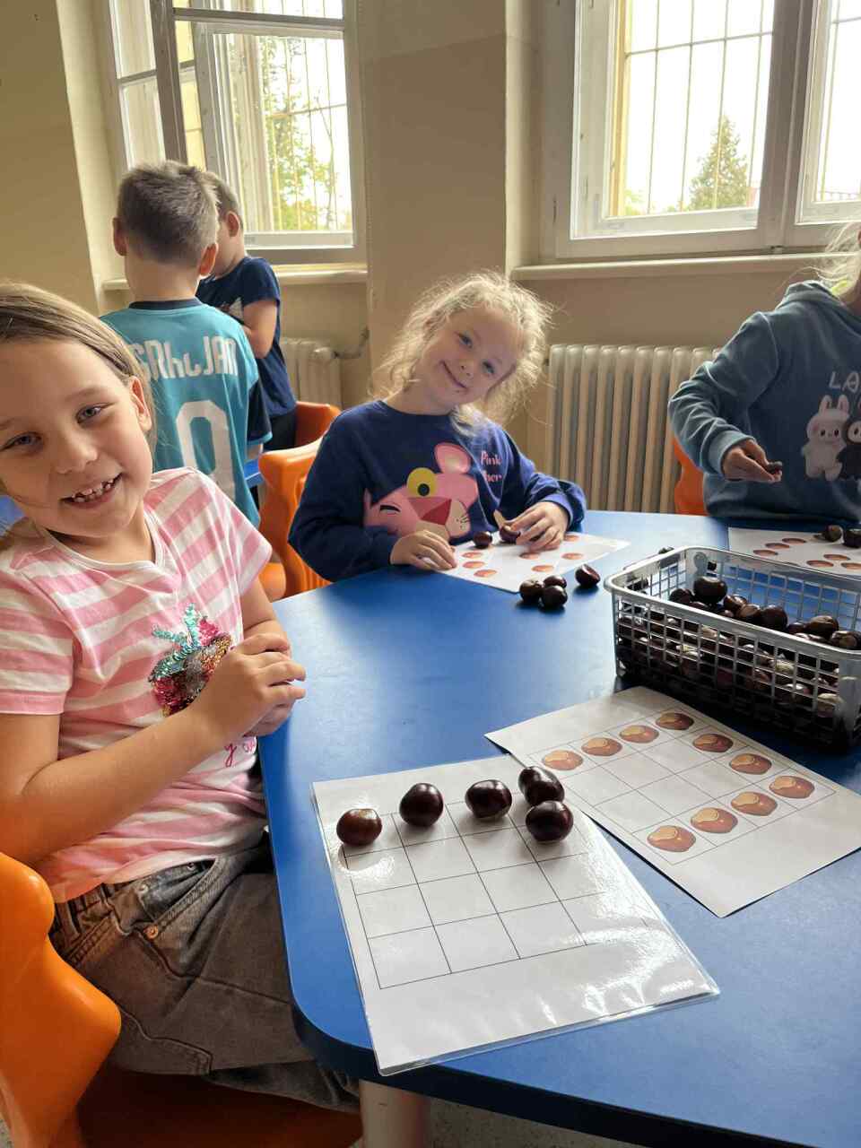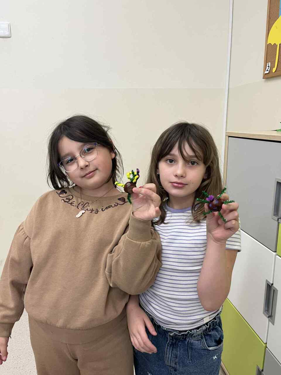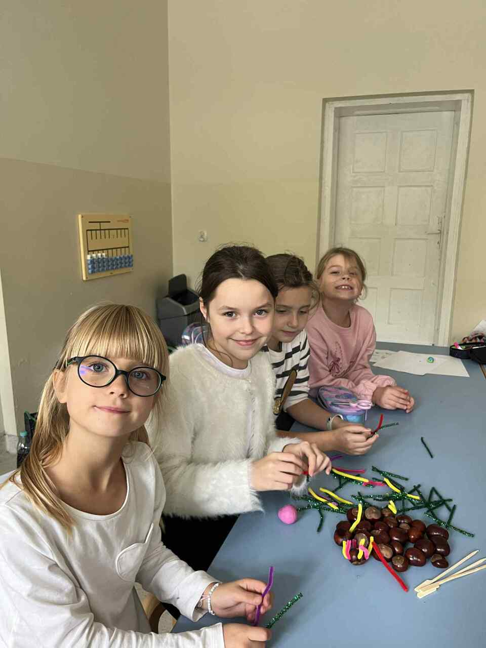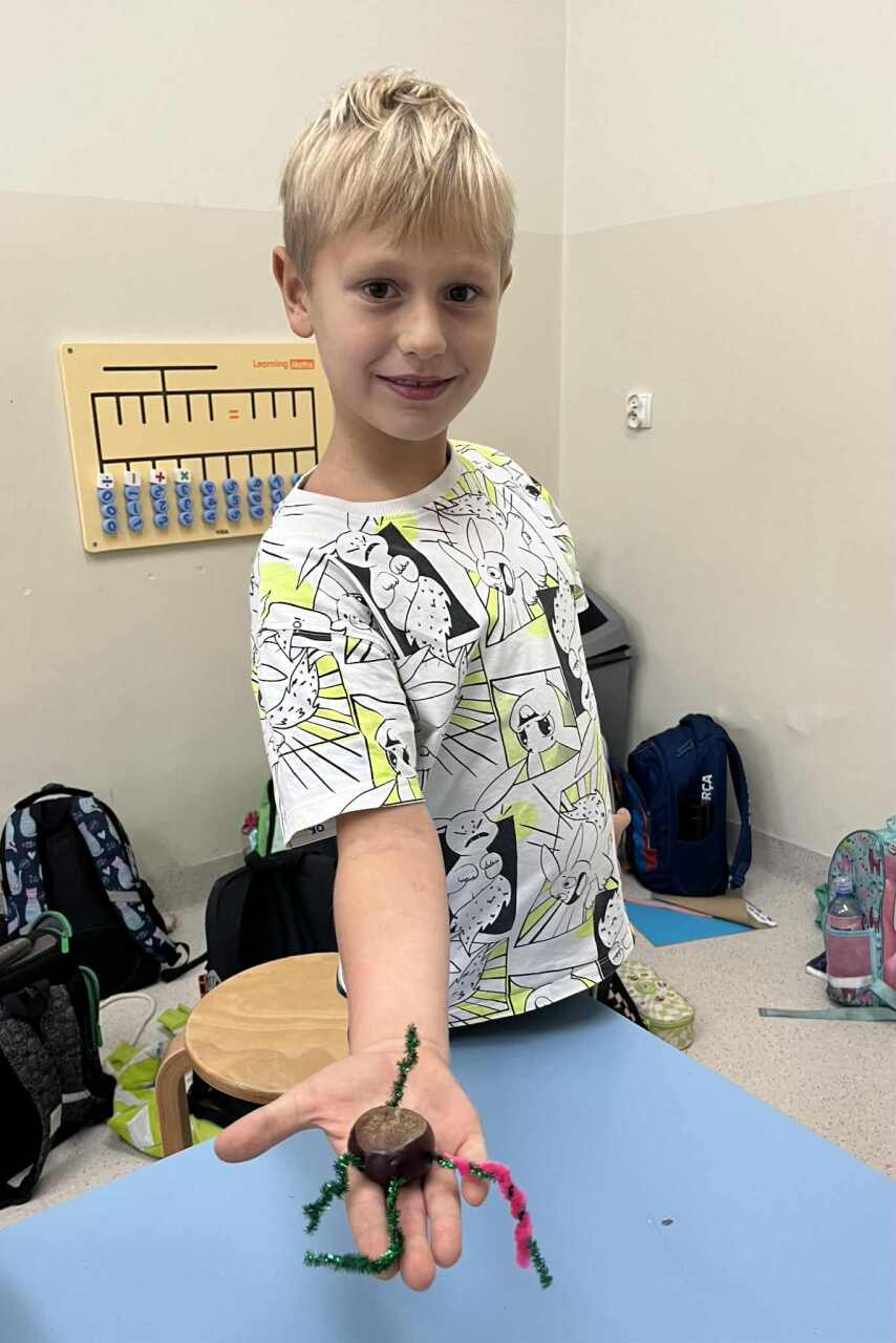🍁 Podczas pobytu w świetlicy uczniowie stworzyli kreatywne prace związane z aktualna porą roku - kolorowego jeżyka z odcisków dłoni oraz zabawne stworki z kasztanów. Kasztany posłużyły nam również do kodowania i układania wzorów.