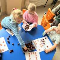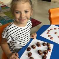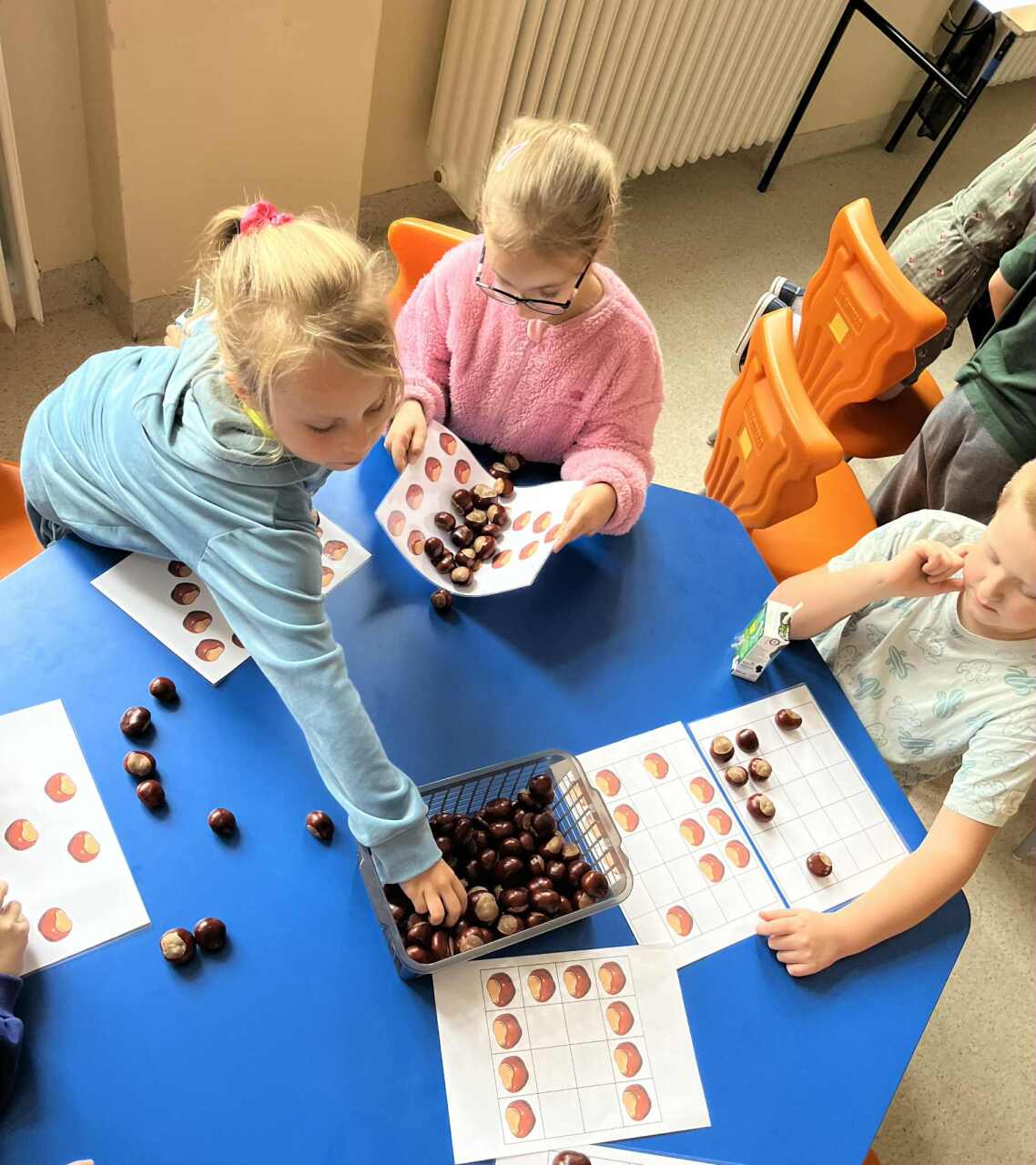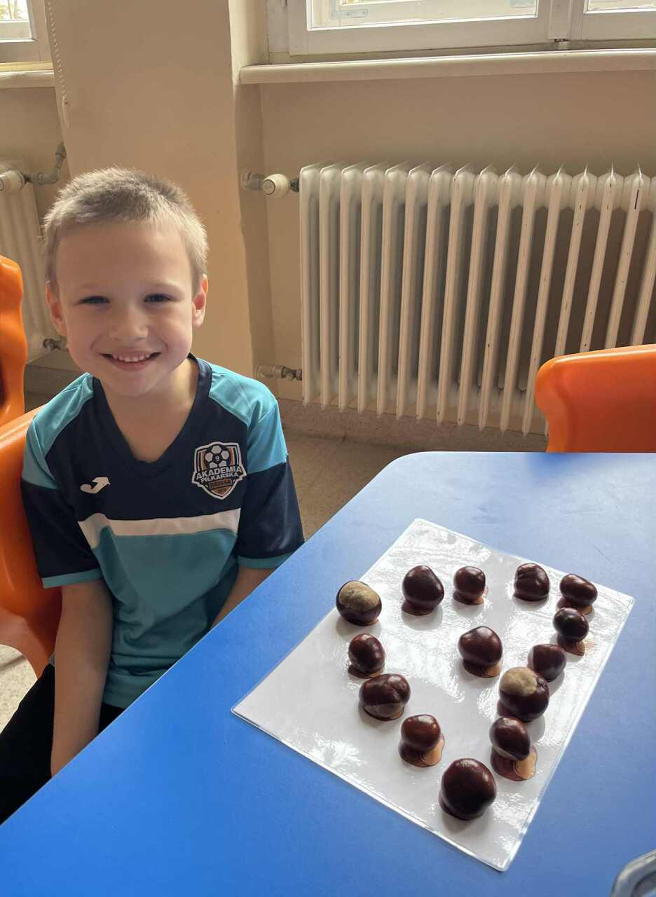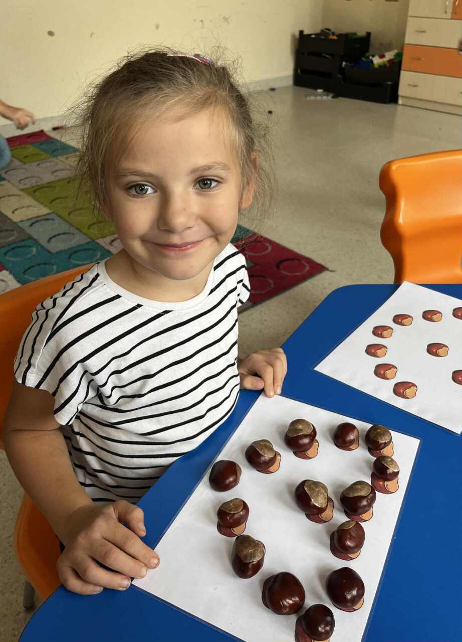 🍁 Podczas pobytu w świetlicy uczniowie stworzyli kreatywne prace związane z aktualna porą roku - kolorowego jeżyka z odcisków dłoni oraz zabawne stworki z kasztanów. Kasztany posłużyły nam również do kodowania i układania wzorów.