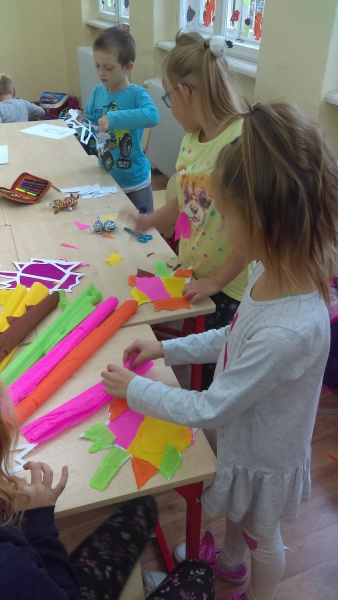W każdy poniedziałek, dzieci z klas 1, uczęszczające na zajęcia świetlicowe, wykonują z wielką pasją przepiękne prace plastyczne.