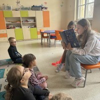Uczennice klasy 4b postanowiły uprzyjemnić czas dzieciom przebywającym w świetlicy i czytały wiersze oraz opowiadania.